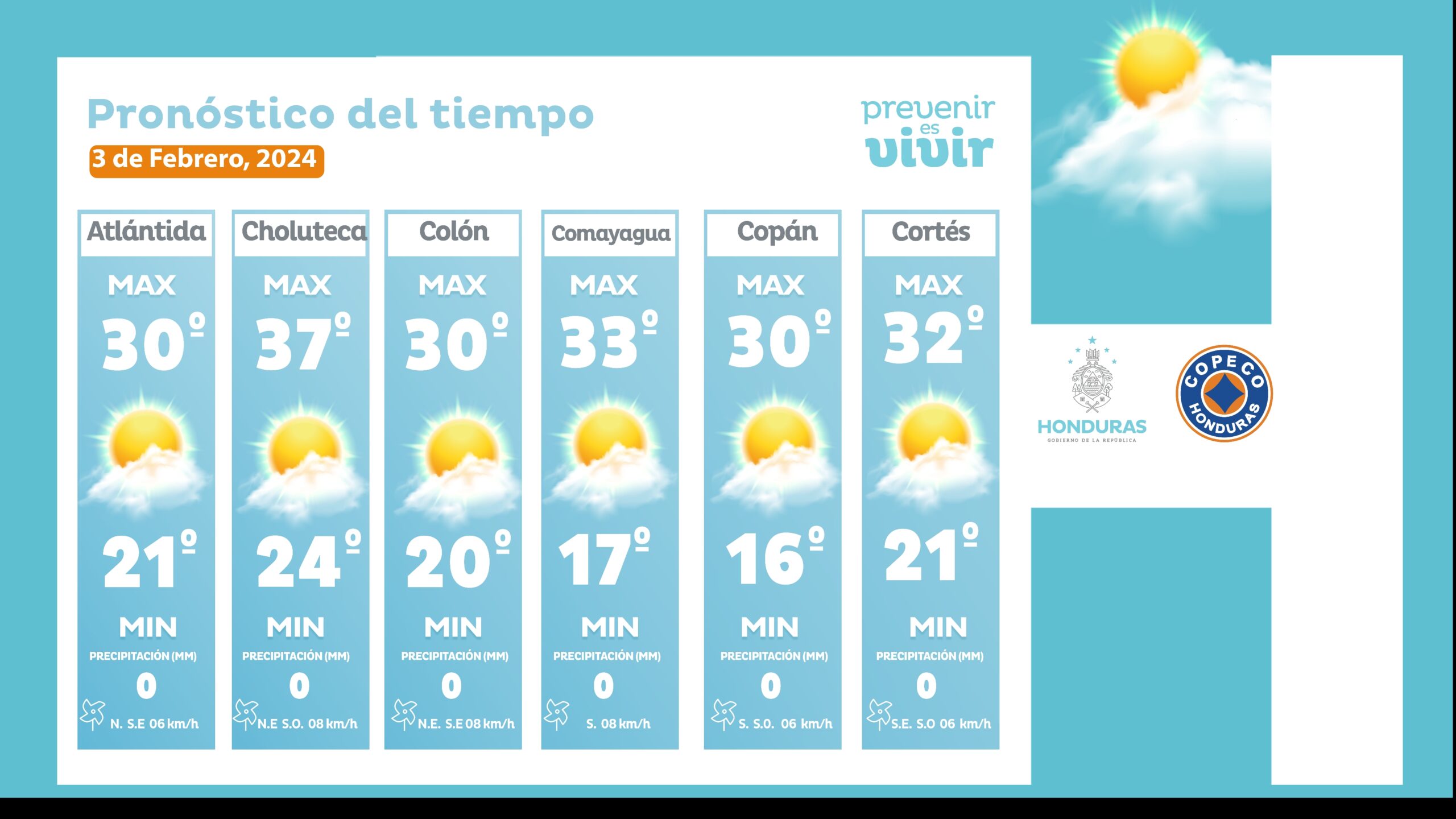 - Olancho: 31° como máxima, 19° como mínimas (03 milímetros)