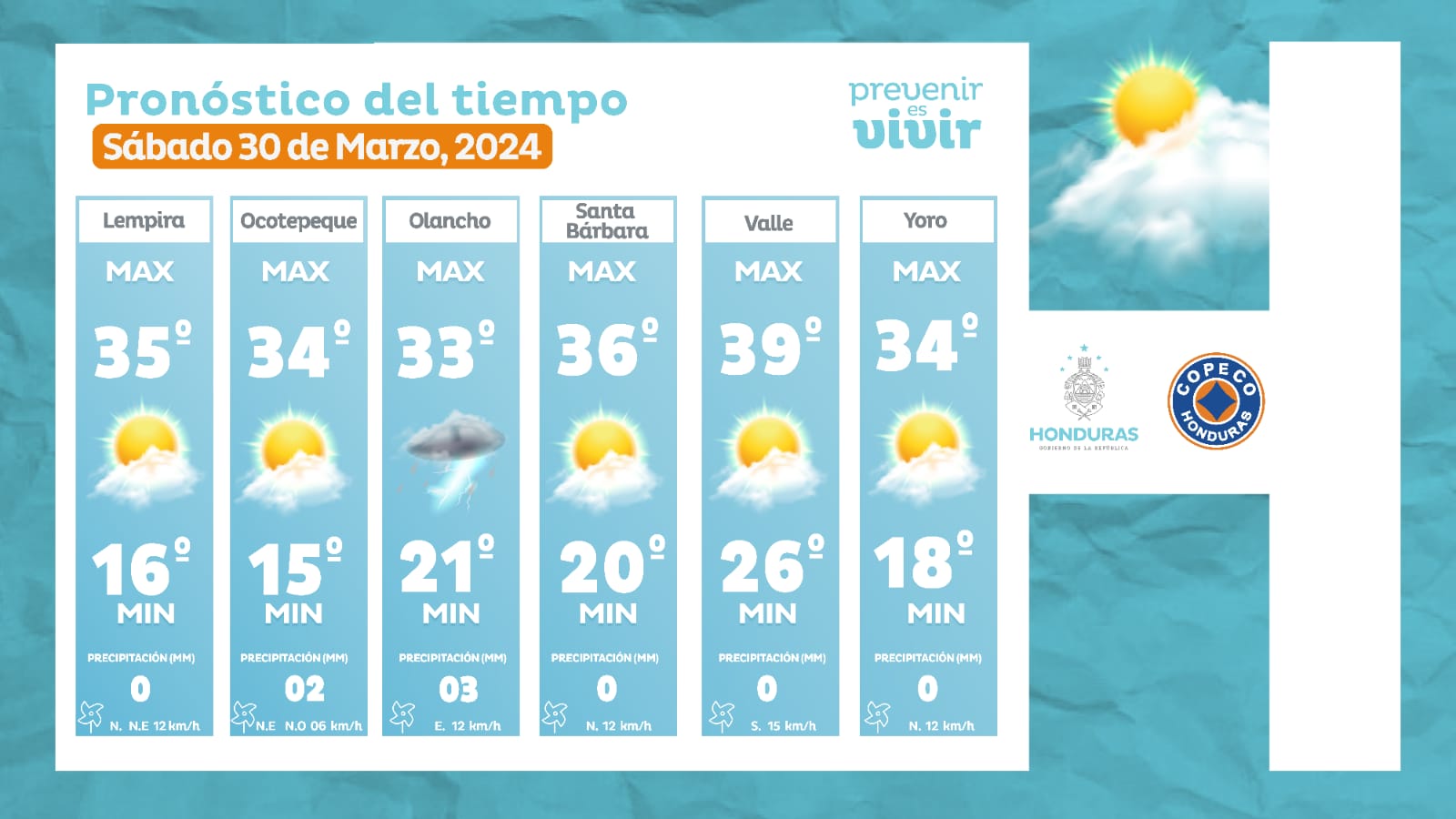 - Olancho: 33° como máxima, 21° como mínima (03 milímetros).