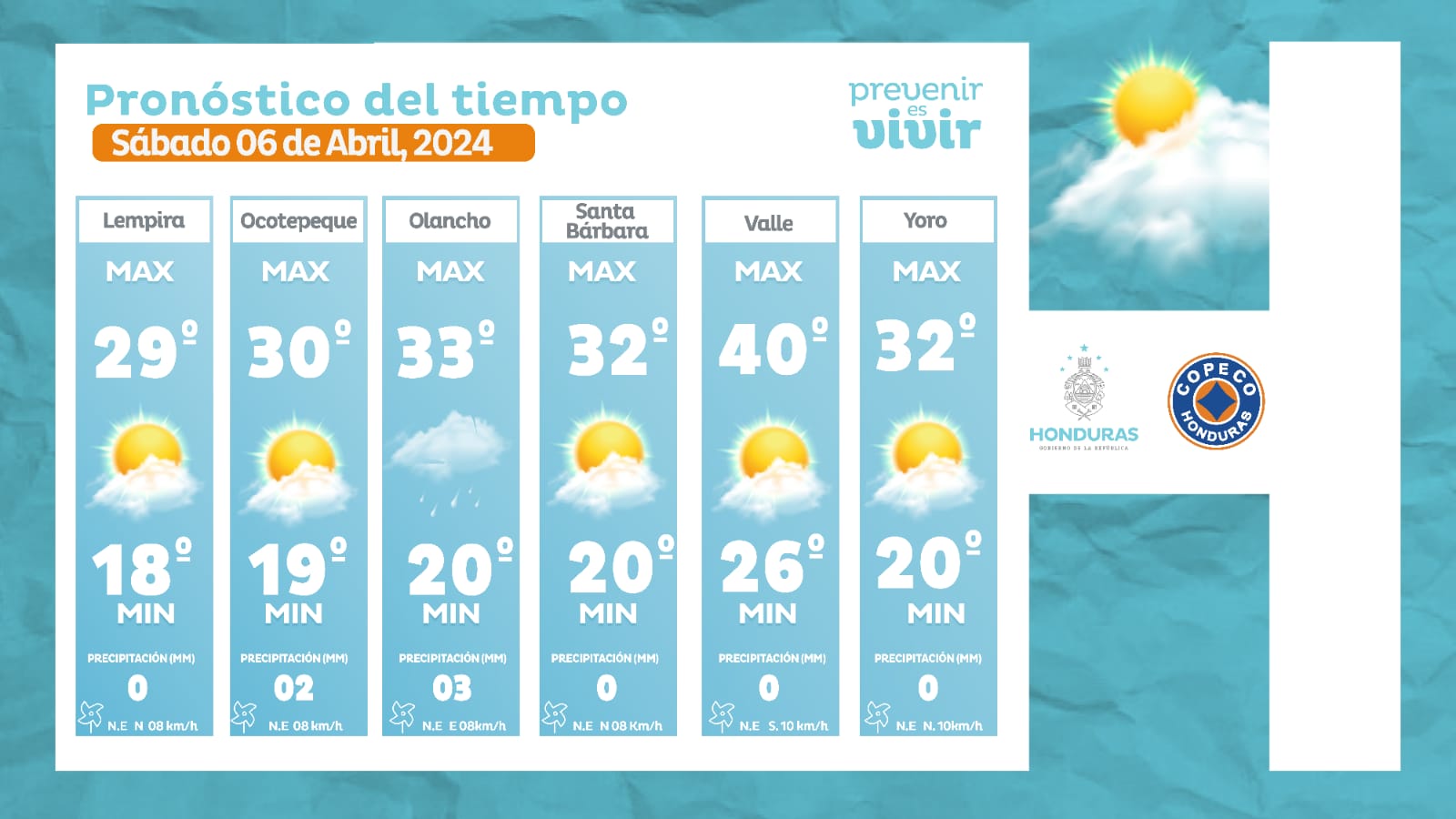 El pronosticador de turno, Mario Centeno, explicó que este día persistirá el clima cálido en la mayor parte de los departamentos que conforman Honduras. Asimismo, en varios sectores del país se generará bruma y humo en el ambiente.