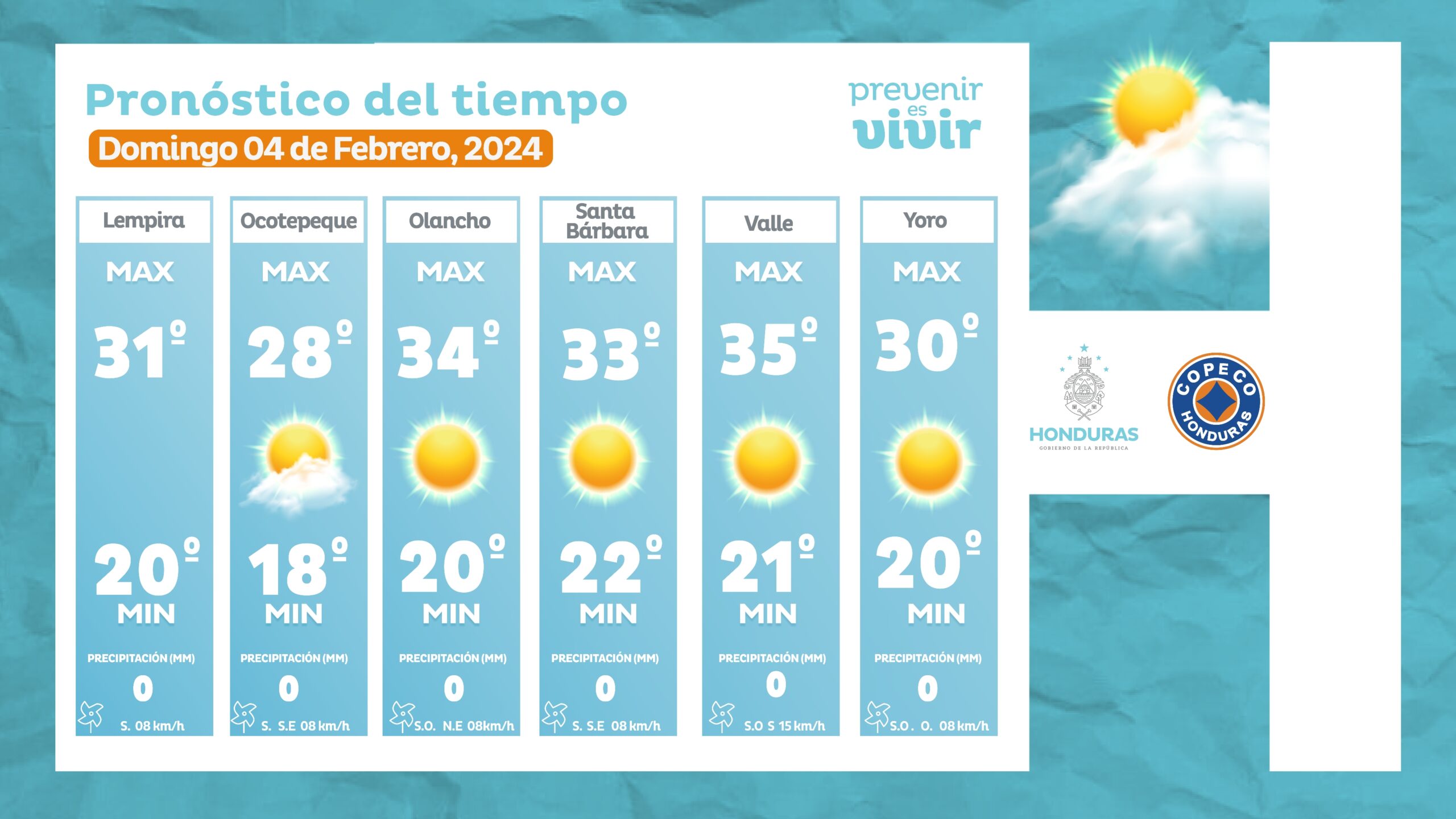 Clima. El Centro Nacional de Estudios Atmosféricos, Oceanográficos y Sísmicos (CENAOS) informó que hoy domingo 4 de febrero imperarán las condiciones secas en el territorio nacional.