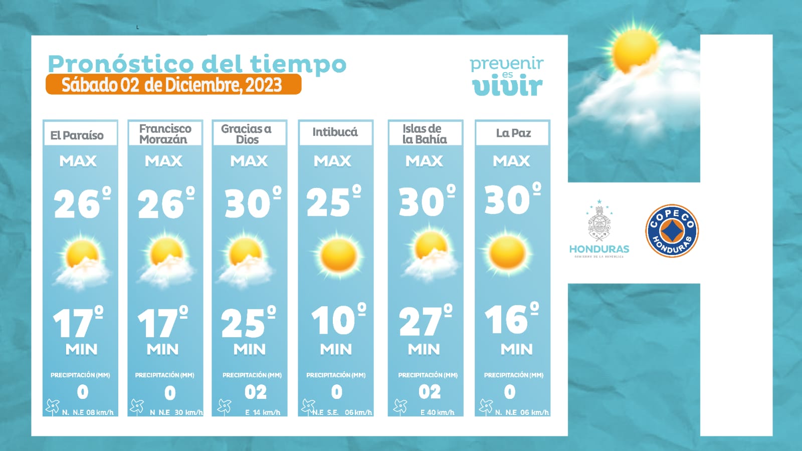 - Comayagua: 30° como máximo, 16° como mínima (0 milímetros).