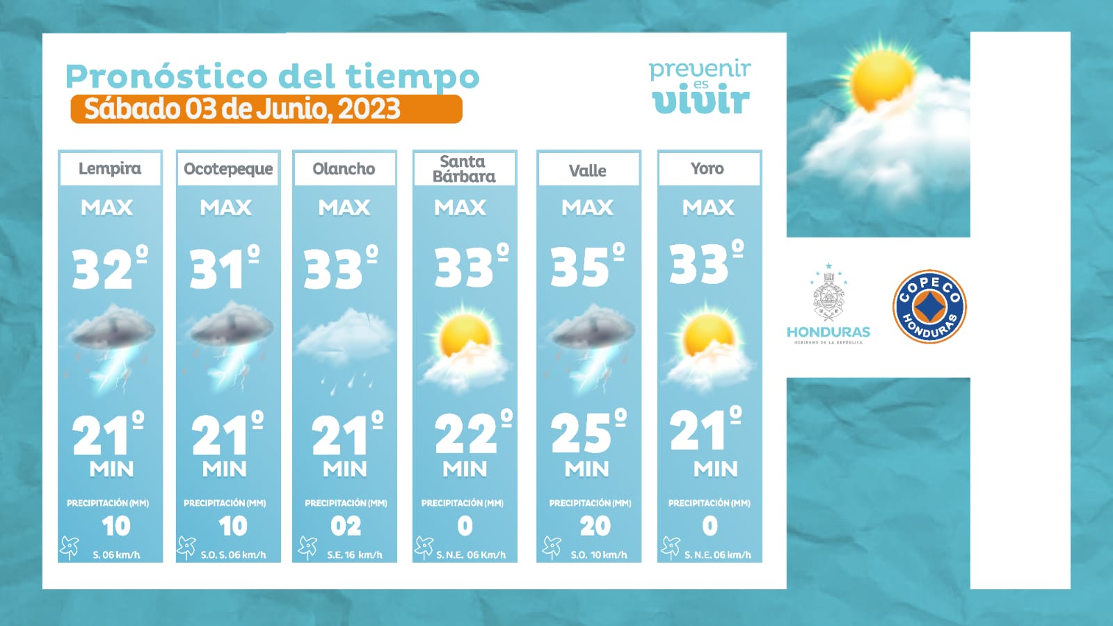 - Comayagua: 34° como máximo, 22° como mínimas (05 milímetros)