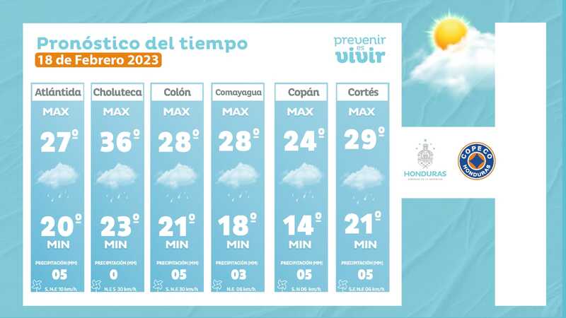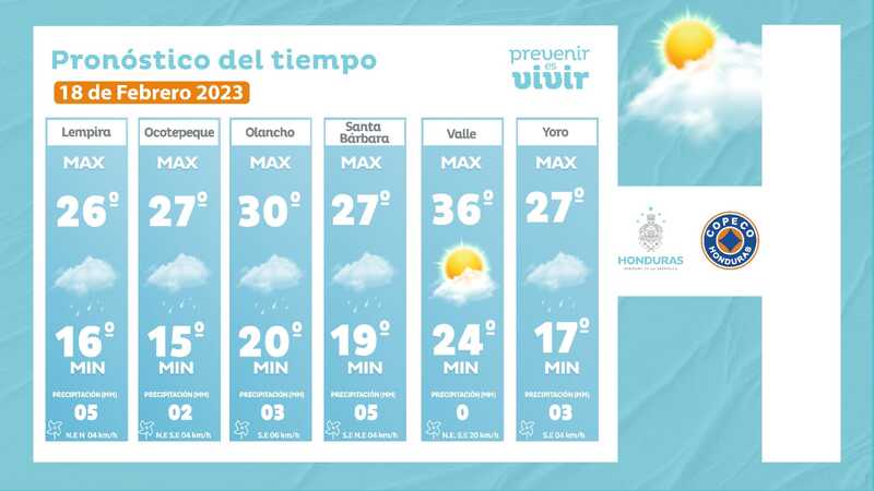 - Comayagua: 28° como máximo, 18° como mínimas (03 milímetros)