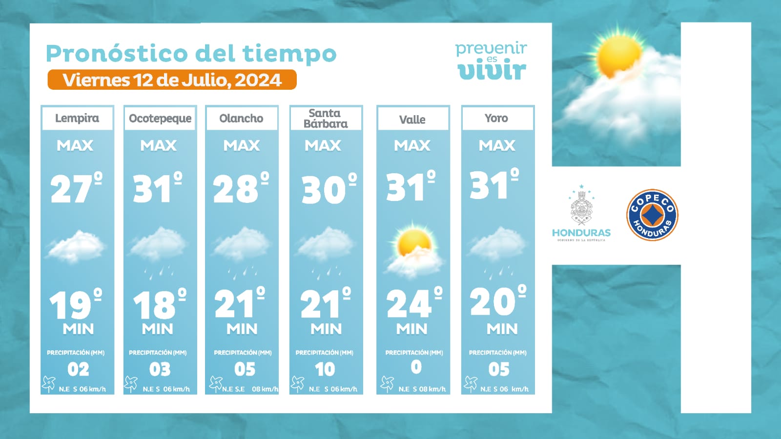 - Olancho: 28° como máxima, 21° como mínima (05 milímetros).