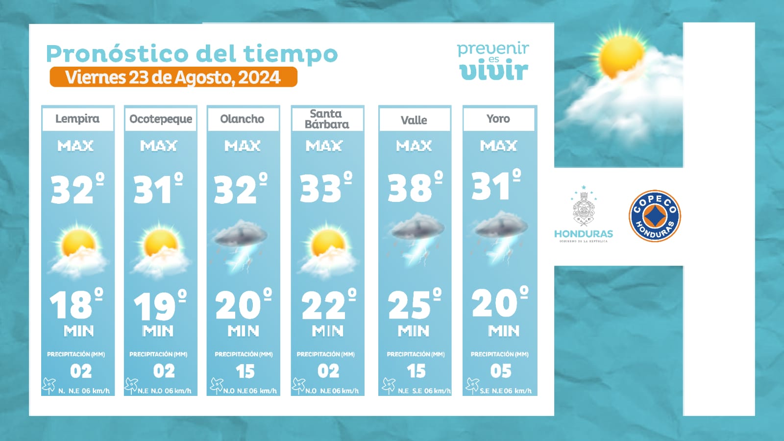 - Ocotepeque: 31° como máxima, 19° como mínima (02 milímetros).