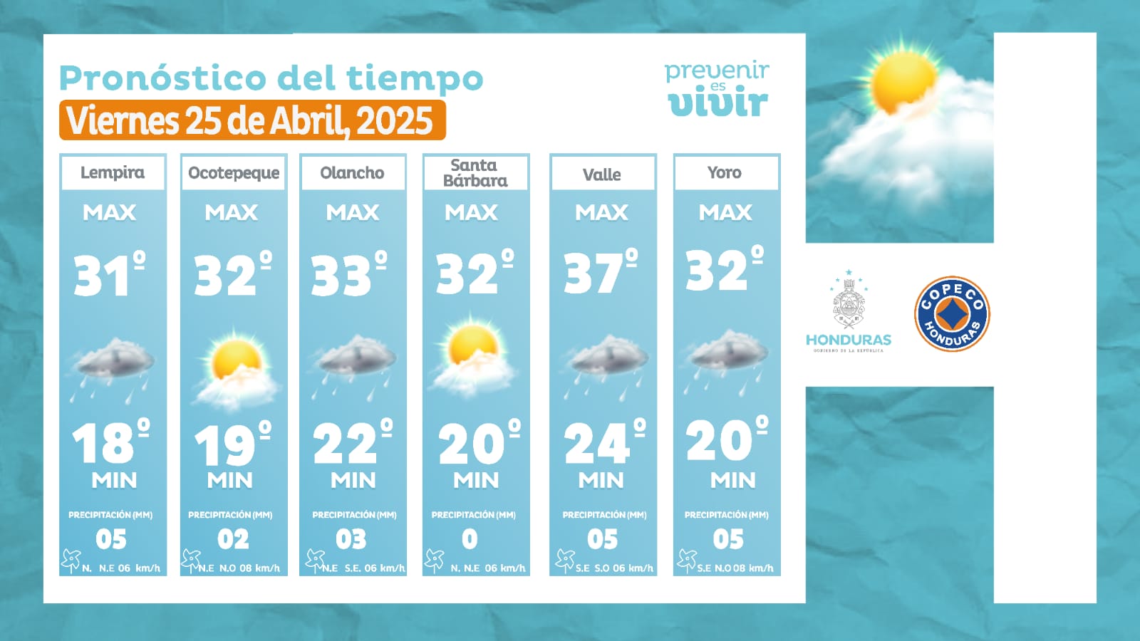 - Choluteca: 37° como máximo, 25° como mínima (05 milímetros).