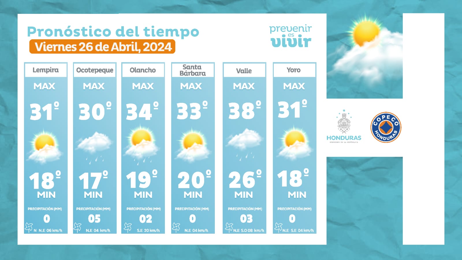 - Olancho: 34° como máxima, 19° como mínima (02 milímetros).