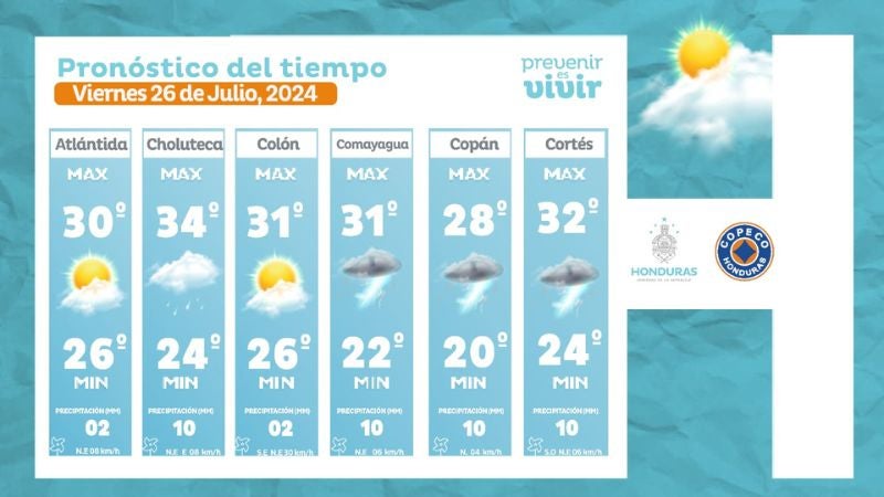 - Olancho: 32° como máxima, 22° como mínima (05 milímetros).