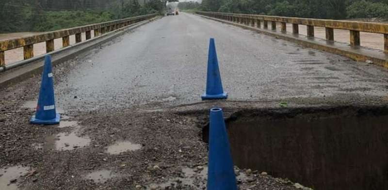 El puente sobre el río Cuaca cerca de Tocoa, Colón, también está bloqueado el paso dado a que se produjo un socavón.