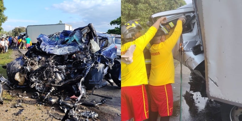 También se constató que otra de las víctimas quedó atrapado en la cabina del camión. Equipos de rescate del Cuerpo de Bomberos lograron liberarla de los hierros retorcidos.
