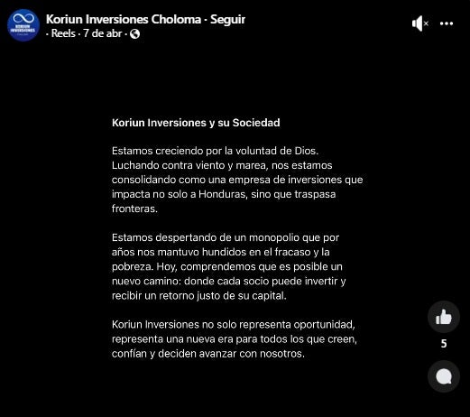 Según la fiscalía, Koriun usó una intensa campaña en la red social Tiktok. En el 2024, la empresa reportó ingresos de más de 86.9 millones de lempiras, provenientes de unos 35 mil inversionistas.