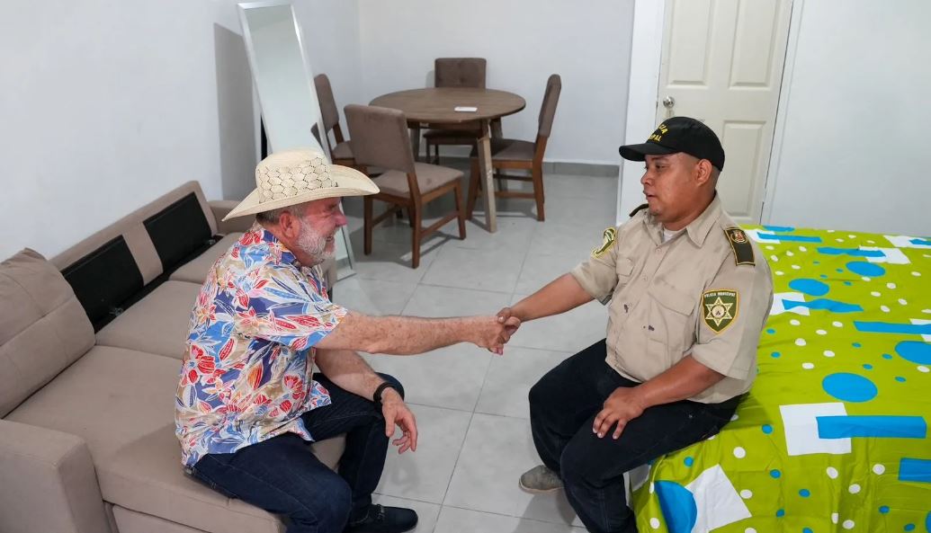 “Ahora vemos que podemos apoyar a las personas que están en necesidad y este es el caso del policía Edwin Torres. A través del programa de inclusión social. él es un policía municipal que cuida a 200 niños en la Flor de Cuba”, precisó el edil.