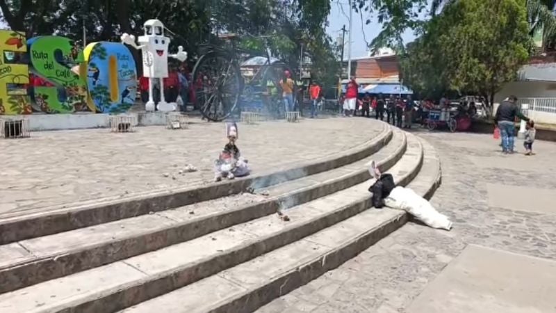 Los muñecos contenían pólvora en su interior y explotaron mientras distintos grupos coreaban consignas, expresando su inconformidad hacia la gestión del actual gobierno.