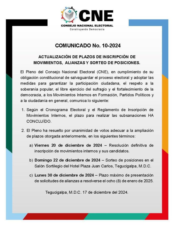 Por otro lado, Lobo solicitó a las autoridades del órgano electoral que agilicen los trámites para desarrollar todo lo relacionado con las elecciones primarias de marzo de 2025.
