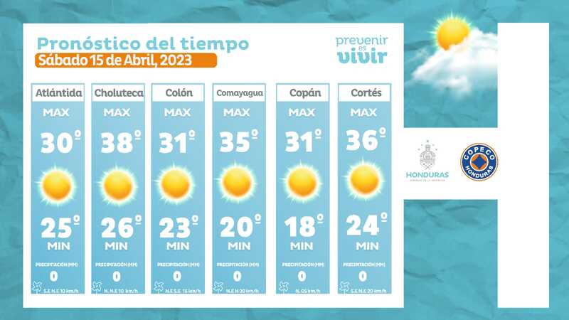 Tegucigalpa, Honduras.- Las autoridades del Centro de Estudios Atmosféricos, Oceanográficos y Sismológicos (CENAOS) informaron que este sábado 15 de abril continuarán las condiciones cálidas en la mayor parte del territorio nacional.