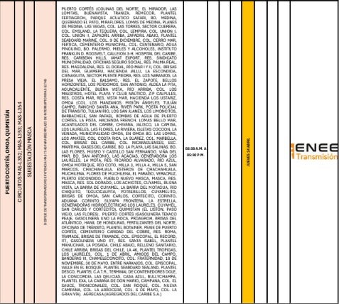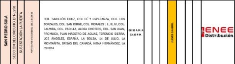 Finalmente, en San Pedro Sula, los cortes programados debido a los trabajos de mantenimiento tendrán lugar entre las 8:00 a. m. y las 2:30 p. m.