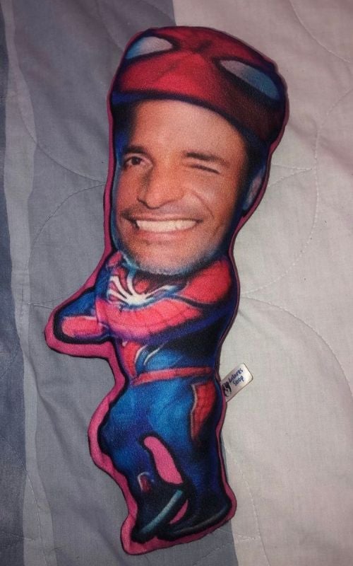 «He visto que subieron muchos memes con esta almohada. ¿Quién la tiene? Manden su foto con la suya«, tuiteó el artista junto a una imagen del cojín en cuestión, que es él en miniatura. Aunque, en realidad, lo que está encogido es solo el cuerpo, pero no la cabeza, por lo que el resultado es bastante deforme y extraño.