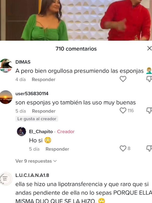 «¿Qué opina el público, son reales o no?», escribió una cuenta que lleva por nombre «El Chapito», en un vídeo donde se ve a Milagro bailar con un conjunto verde.