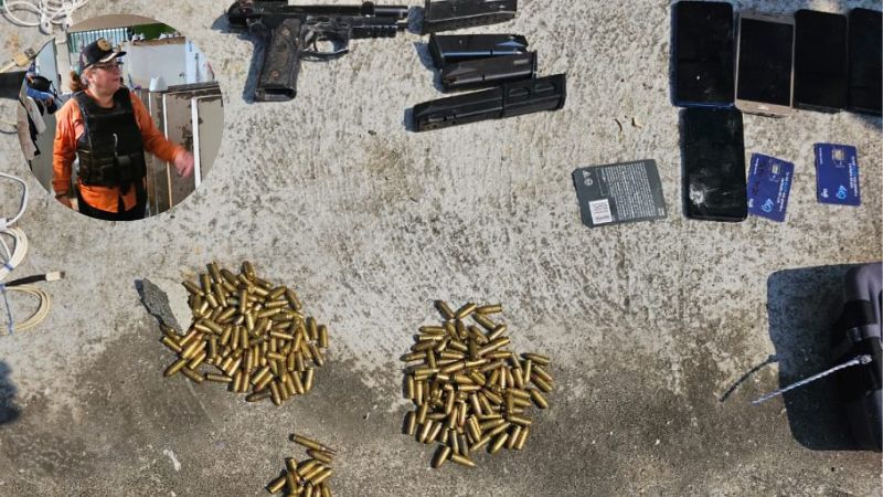Tras el operativo se decomisó dos armas de fuego, teléfonos celulares y antenas de internet con tres repetidores de WIFI y una granada.