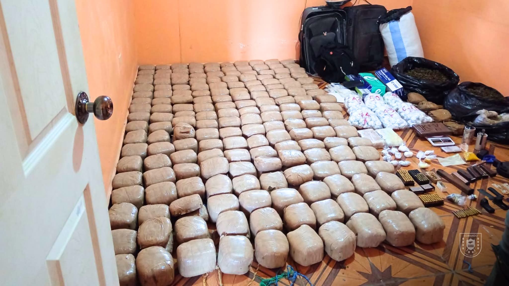 Según las FF. AA., la vivienda funcionaba como una bodega clandestina utilizada para el almacenamiento de estupefacientes y armamento posiblemente vinculado a estructuras del crimen organizado.