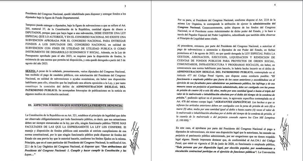 En la denuncia se le pide a las autoridades que se documente la calidad del presidente del Congreso Nacional.