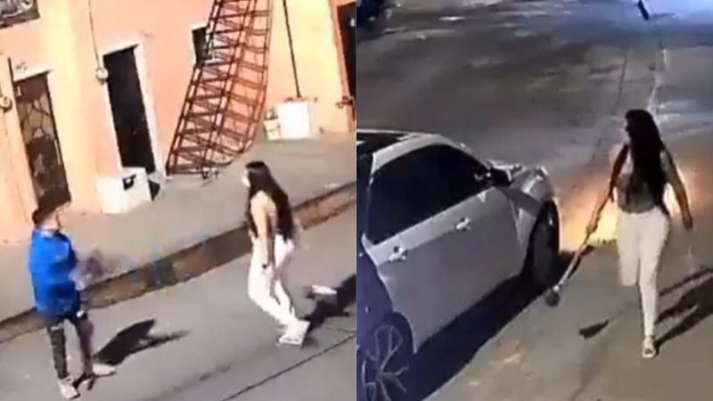 En un acto de desafío, la mujer salió de su hogar empuñando una escoba rota y otro objeto, dirigiéndose al vehículo y golpeando el parabrisas mientras lo amenazaba. Sin ofrecer ninguna respuesta verbal, el hombre abrió la puerta trasera de la camioneta y extrajo un rifle.