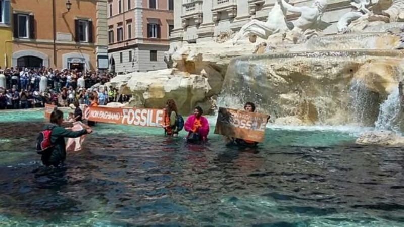 Militantes de la organización ecologista Last Generation se metieron en la famosa fuente y vertieron en el agua un líquido a base de carbón vegetal, antes de resultar desalojados por la policía.