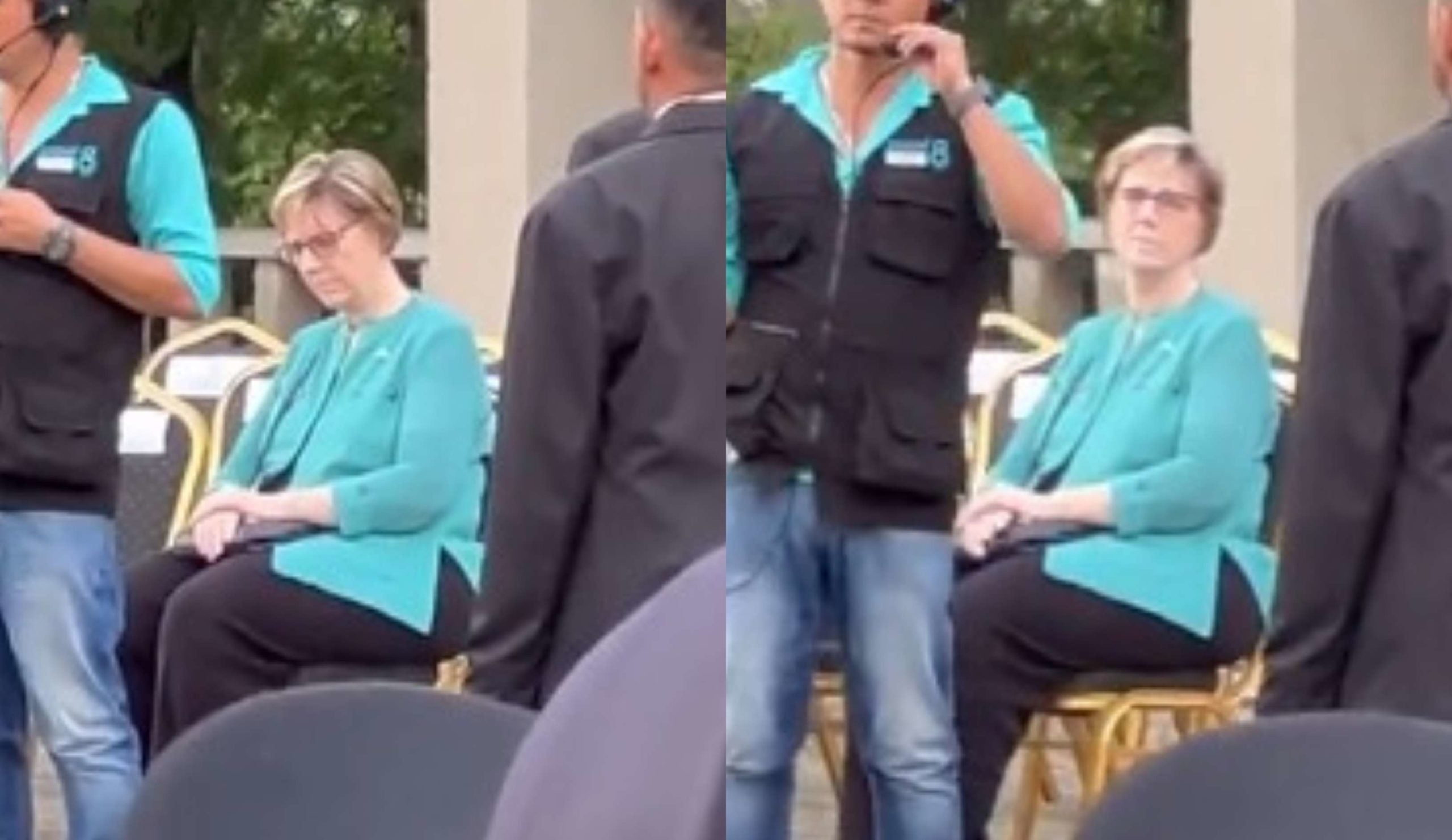 En un breve video que muchos internautas han compartido en redes sociales se ve a la diplomática sentada, inmóvil y cabizbaja, en una silla, aparentemente dormida. Segundos después se ve como, de manera inmediata, reacciona y se despierta.