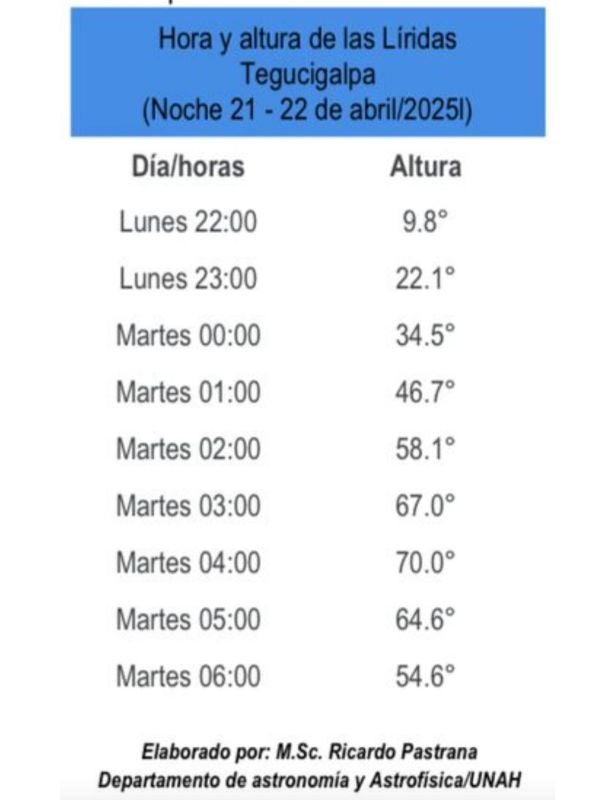 La constelación de Lyra, desde donde parecen surgir los meteoros (el llamado “radiante”), estará cada vez más alta a medida que avance la madrugada, alcanzando su mejor punto entre las 3:00 y 5:00 de la mañana.