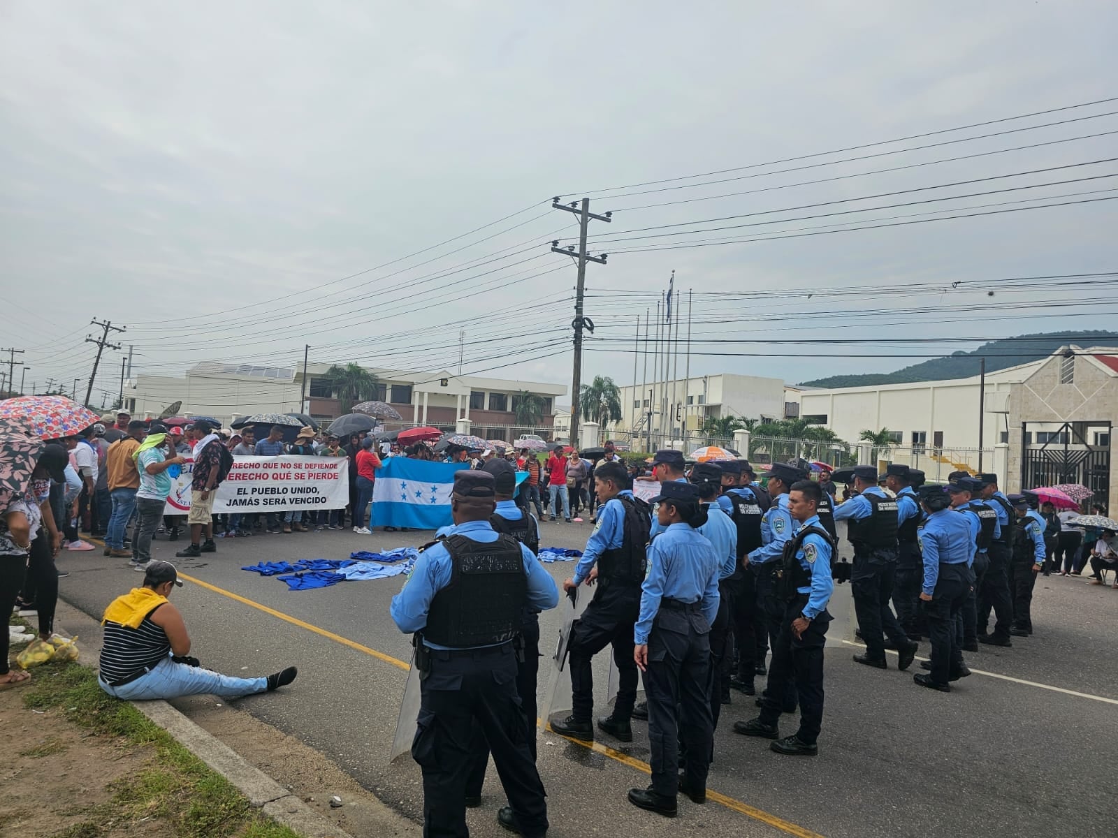 Redacción. Exempleados de Delta Apparel Honduras se tomaron la carretera CA-5 frente al parque Industrial ZIP Buenavista, en Villanueva, Cortés, para exigir el pago de sus prestaciones.