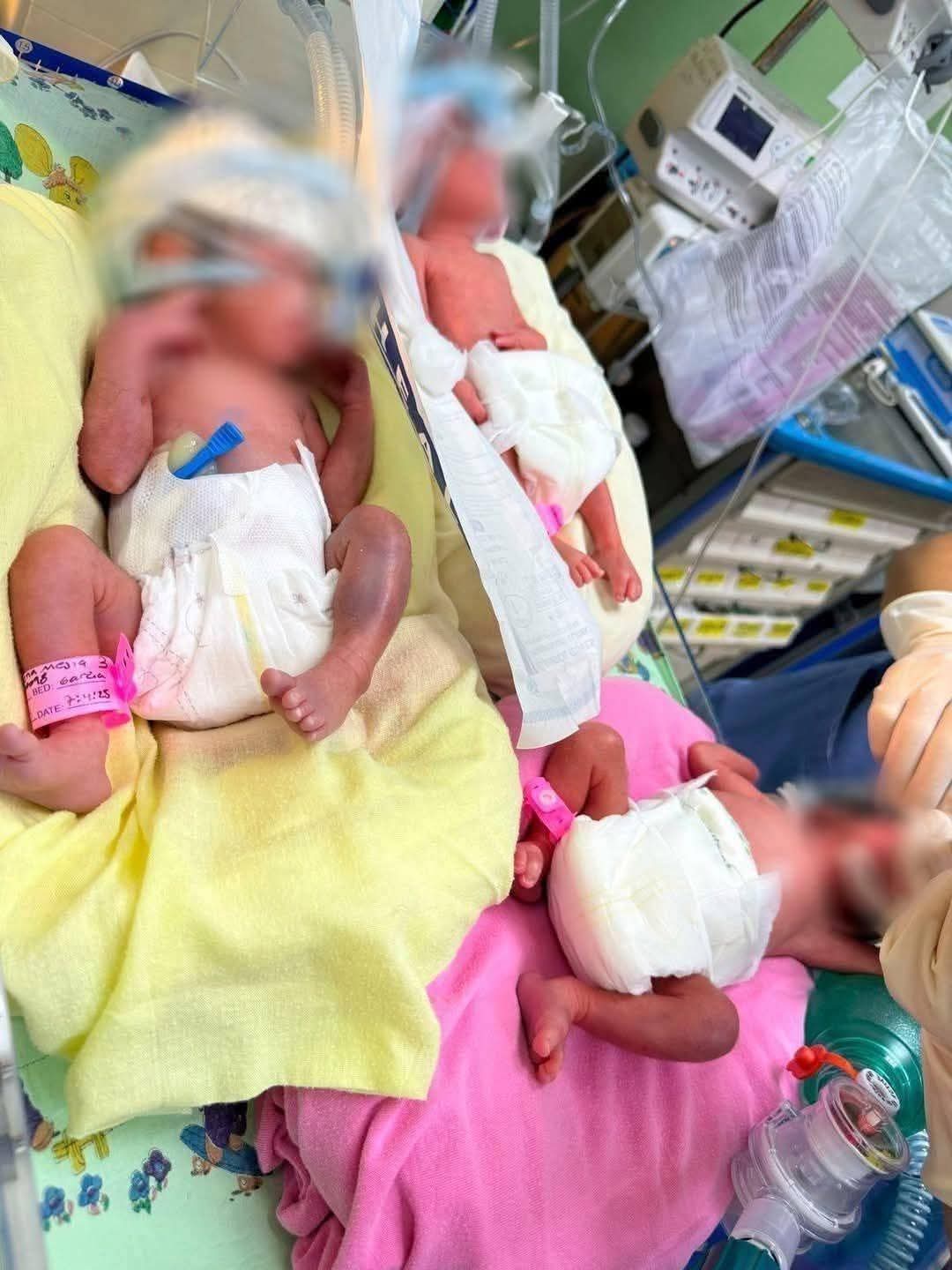 La joven dio a luz a sus tres hijas mediante una cesárea de emergencia el 7 de abril, cuando apenas cursaba la semana 29 de gestación, aproximadamente diez semanas antes del término natural del embarazo.