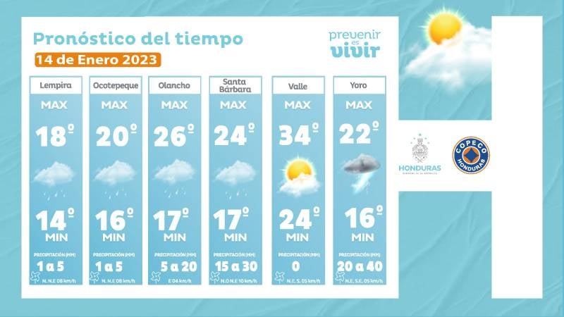 - Choluteca: 34° como máximo, 24° como mínimas (0 milímetros)