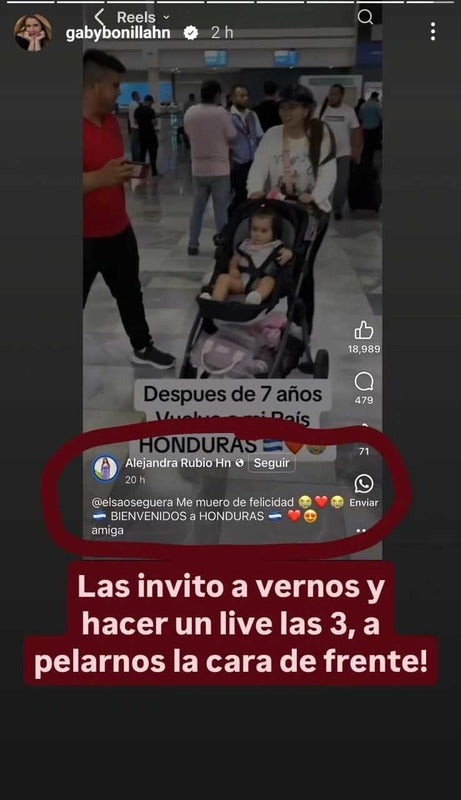 En el mismo posteo, Bonilla mostró una captura de pantalla en la que se mira la noticia que Oseguera regresaba a Honduras y donde Rubio le escribía en un comentario “me muero de felicidad, bienvenidos a Honduras, amiga”.