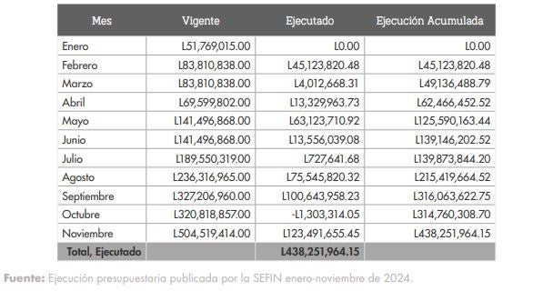 - Ejecución acumulada: L438,251,964.15 (86.86 %)