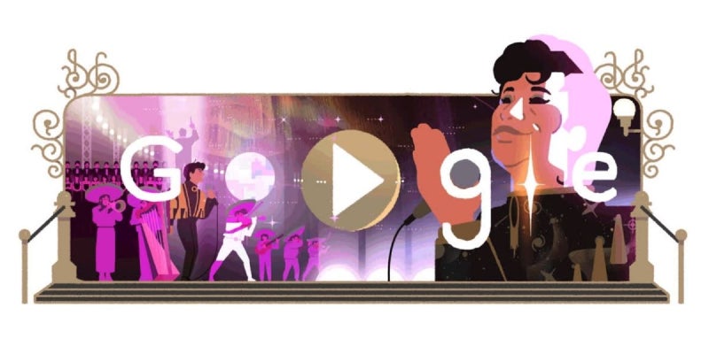 El doodle redirecciona a un video que captura momentos significativos de la vida del Divo de Juárez, desde sus inicios hasta sus icónicas presentaciones en el Palacio de Bellas Artes, y de fondo la canción «Noa Noa».
