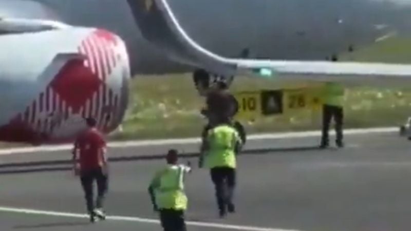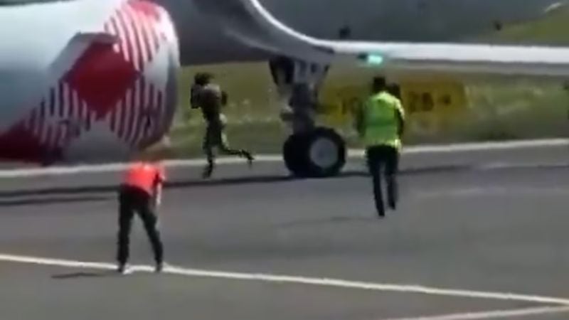 En un video compartido en redes sociales, muestra el momento en que el hombre primero golpeó el fuselaje del avión y luego se dirigió hacia uno de los motores que ya estaba encendido. Al acercarse, se lanzó a la turbina, generando escenas de pánico entre los pasajeros y trabajadores del aeropuerto.