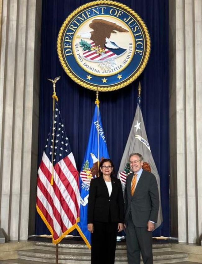 El fiscal general adjunto, Bruce Swartz, recibió a la ministra Moncada y a la delegación hondureña en el Departamento de Justicia de los Estados Unidos durante la segunda reunión del día.