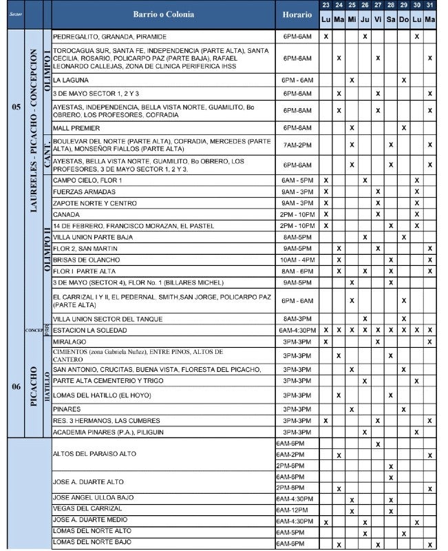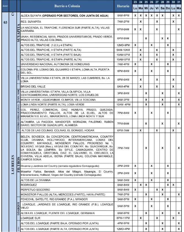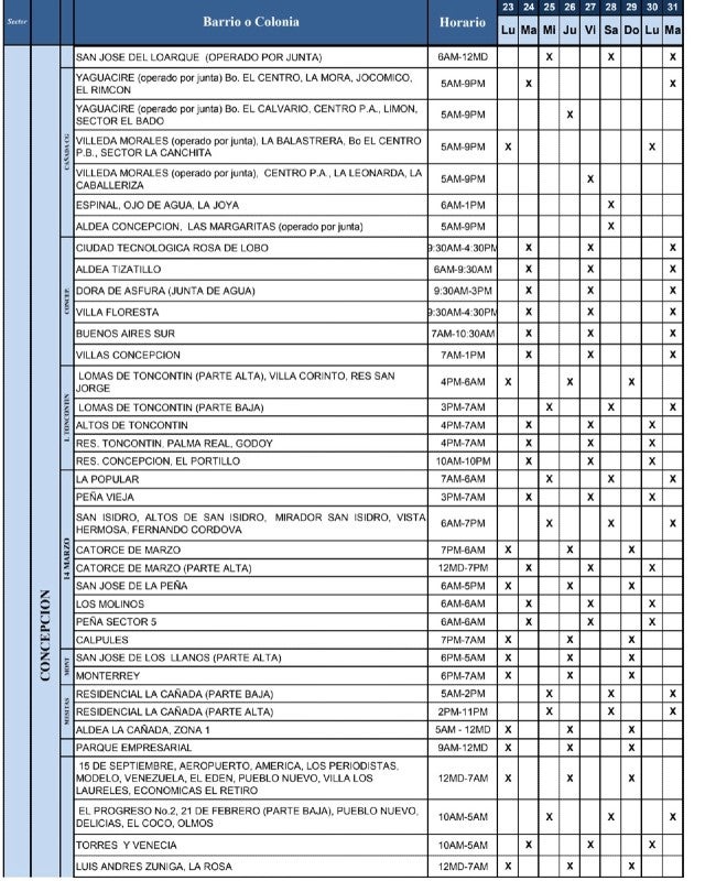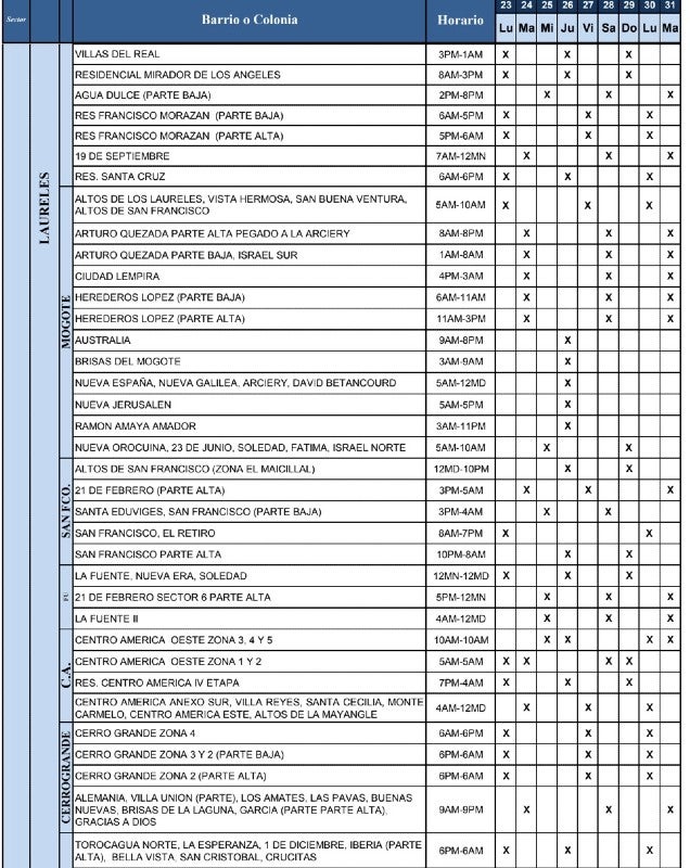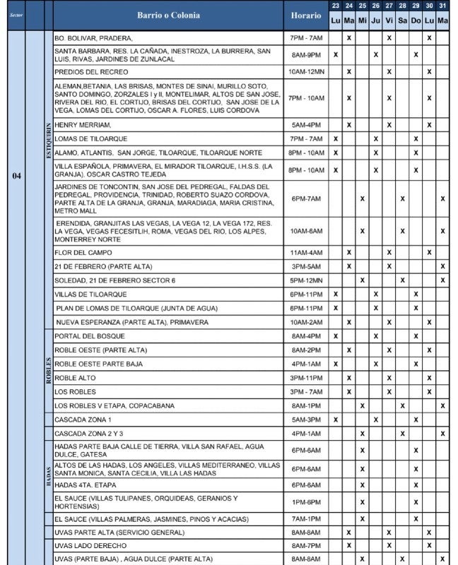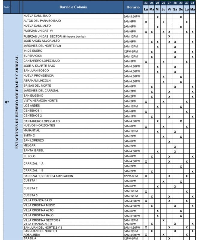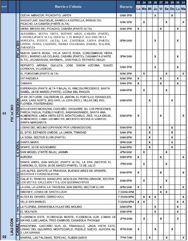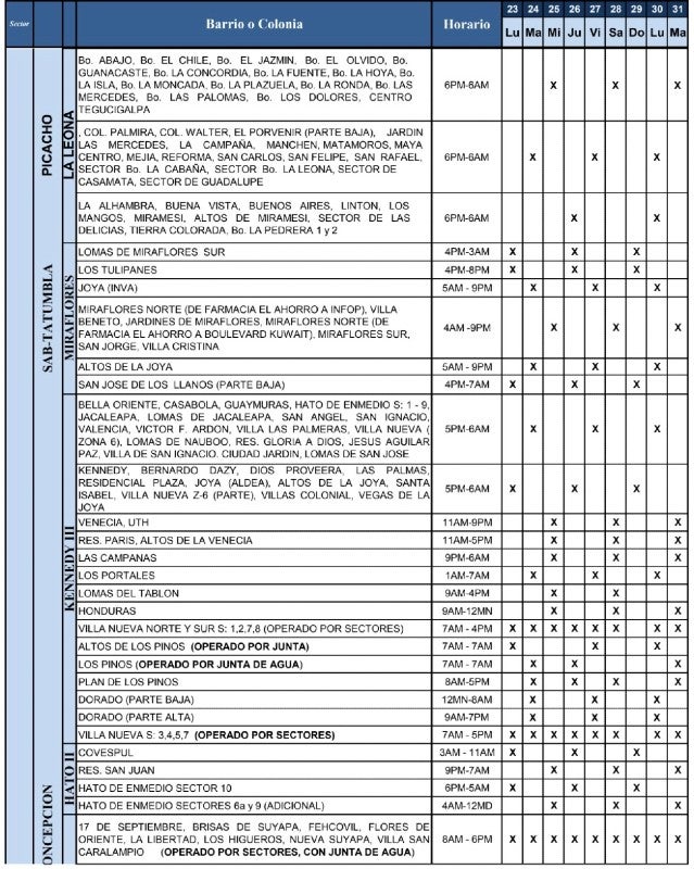 Del mismo modo, la UMAPS compartió los horarios de redistribución del agua en los diferentes barrios y colonias de Tegucigalpa y Comayagüela.