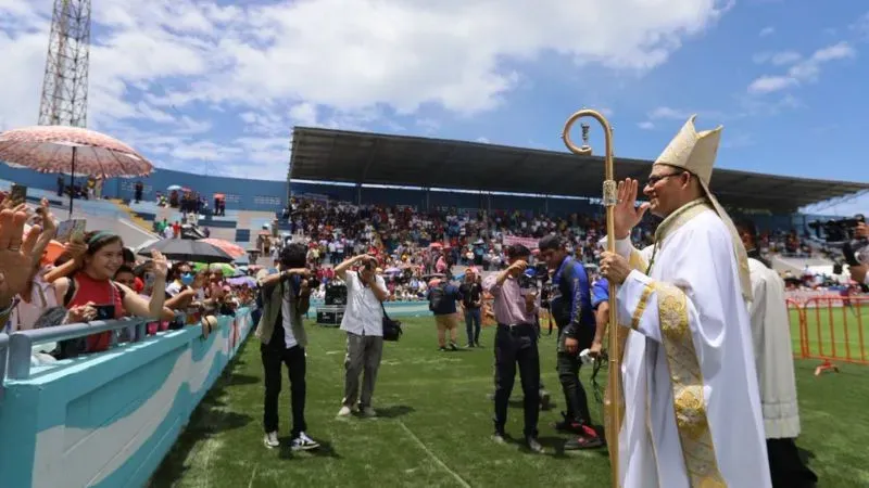 Cientos de feligreses católicos viajaron desde diferentes zonas del país para estar presentes en este histórico acto, que se realizó en el Estadio Municipal Ceibeño. El ambiente era de fe y regocijo, ya que Velásquez asume una importante misión.