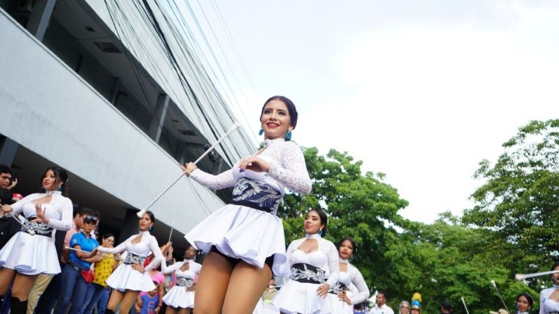 Las miradas también recayeron en las hermosas y talentosas palillonas que conquistaron al público con cada uno de sus pasos. Las jóvenes contagiaron con su carisma y dedicación a cada sampedrano que disfrutó de su show.