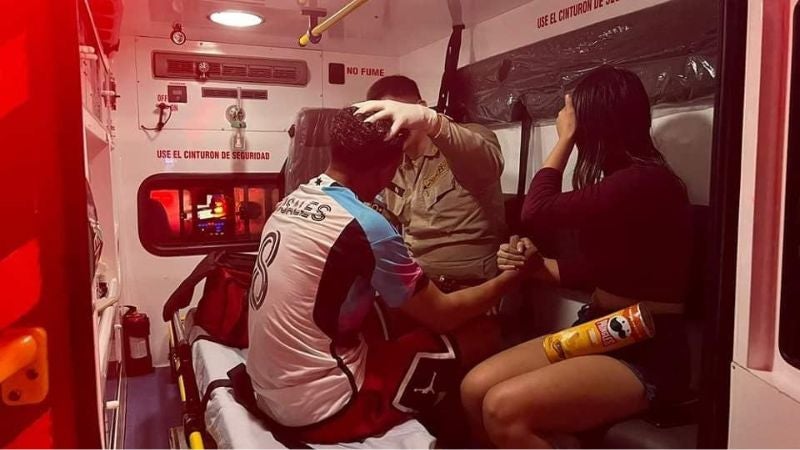 Imágenes difundidas por medios locales muestran que el jugador de 27 años presenta heridas en su rostro y extremidades. A él lo subieron a bordo de una ambulancia y lo llevaron a un hospital para un mejor chequeo.