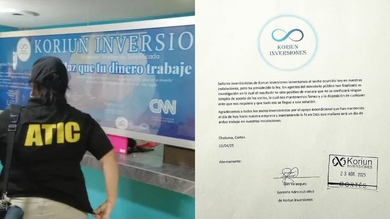 “Señores inversionistas de Koriun Inversiones, lamentamos el hecho ocurrido hoy en nuestras instalaciones, pero ha prevalecido la ley. Los agentes del Ministerio Público han finalizado su investigación, en la cual el resultado ha sido positivo, de manera que no se confiscará ningún lempira de aporte de los socios. Nos mantenemos firmes y a la disposición de cualquier ente que nos requiera y que todo eso se llegue a una solución”, reza el escrito.