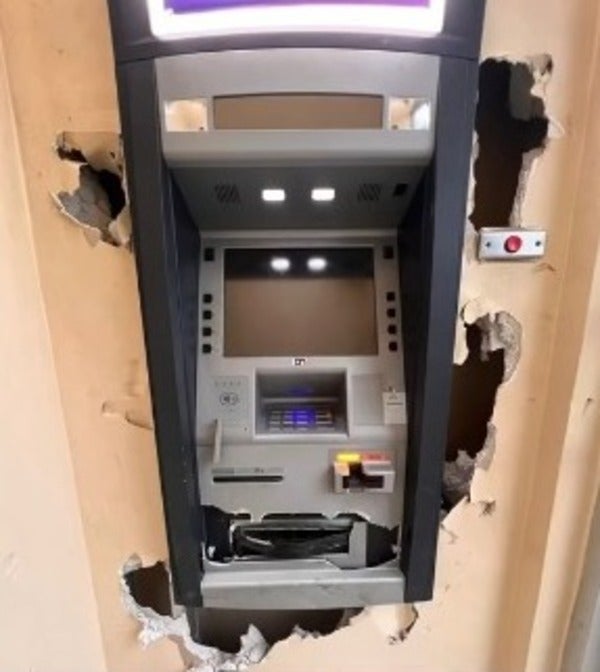 Pensado que quizás era buena idea buscar otro ángulo para hacerle un agujero al cajero, destruyó parte de la pared donde se ubicaba la máquina dispensadora de dinero, aunque, de igual manera, tampoco funcionó.