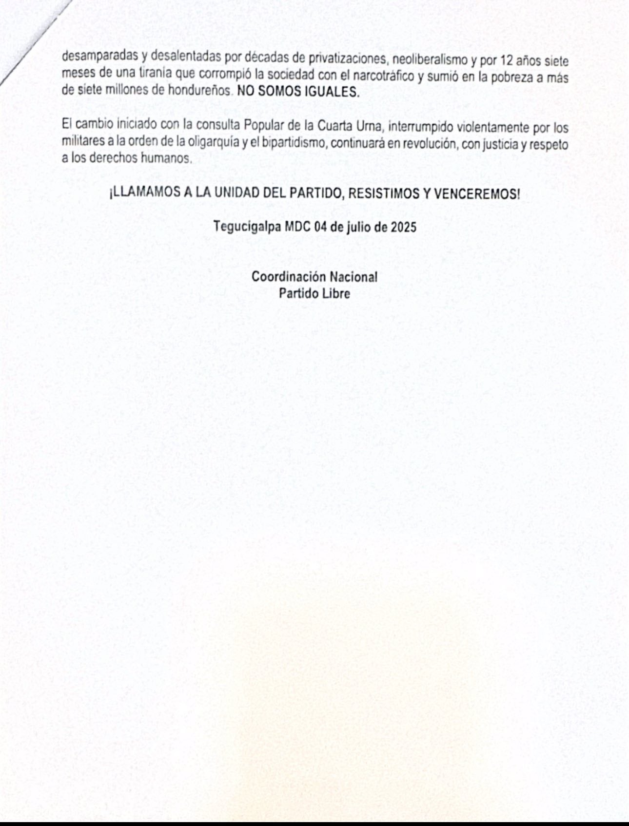 La dirigencia también hizo un llamado a la unidad del partido y a la movilización nacional para exigir investigaciones y sanciones rápidas contra diputados corruptos.