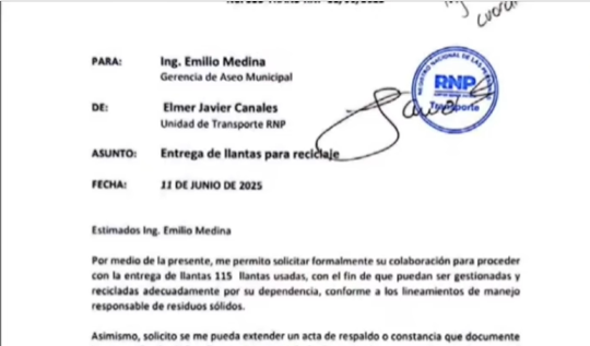 Ante la creciente presión pública, el RNP emitió un comunicado en el que aclara que las llantas descargadas fueron entregadas a la Gerencia de Aseo Municipal como parte de un programa de reciclaje y gestión de residuos sólidos. Según el documento, las llantas son usadas y están destinadas a ser procesadas, sin ningún propósito relacionado con actividades políticas o manifestaciones.