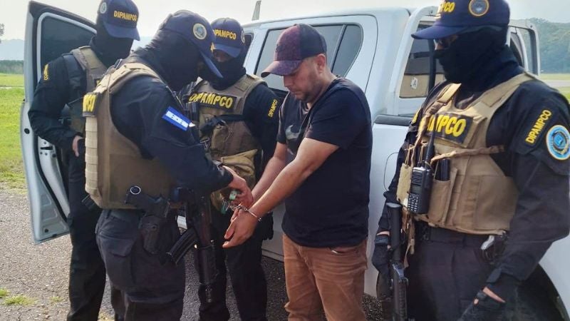 TEGUCIGALPA, HONDURAS. El hondureño Wilson René López Padilla, alias «Guicho», supuesto jefe de la banda criminal Los Cálix, arribó a Tegucigalpa tras su captura en La Ceiba, en la zona norte del territorio nacional.