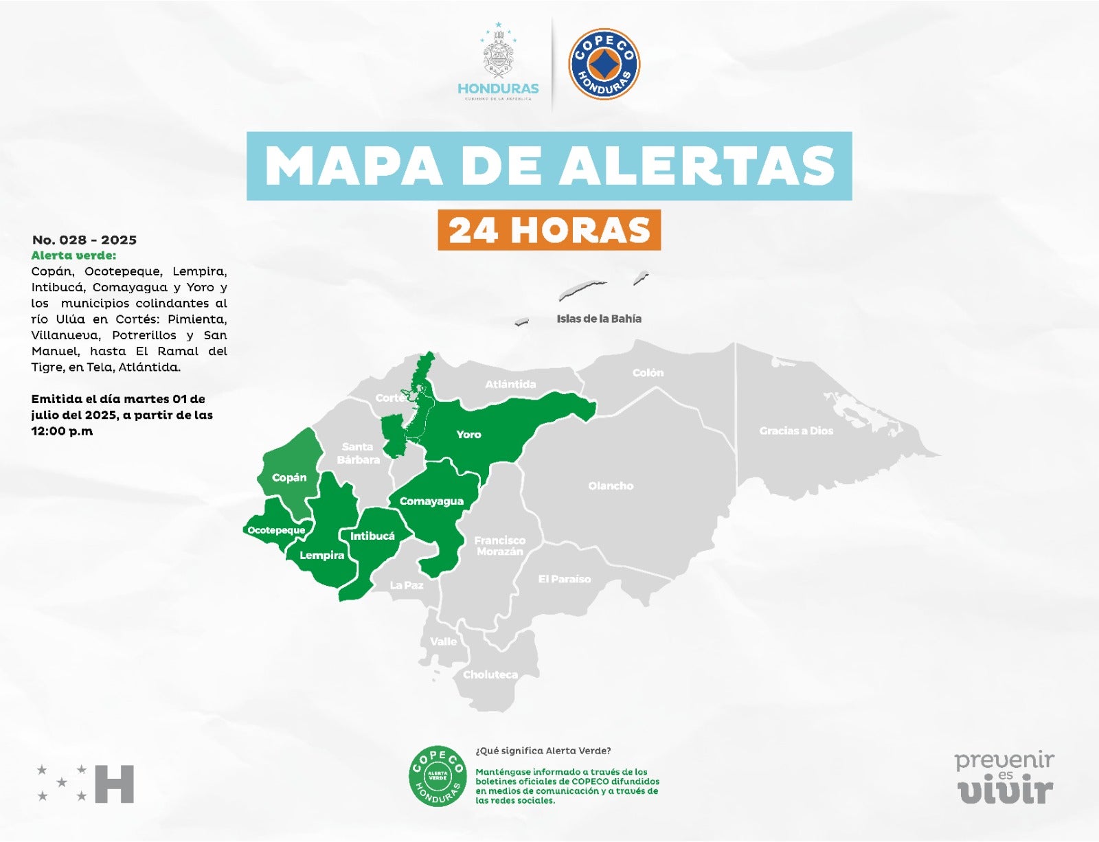 También se mantienen bajo monitoreo las zonas bajas de municipios como Pimienta, Villanueva, Potrerillos y San Manuel, en Cortés, así como el Ramal del Tigre en Tela, Atlántida.