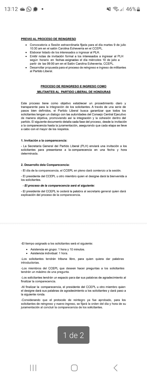 «Hoy mismo se les va a enviar la invitación tanto a Cálix y Nasralla para que asistan a la audiencia el día de mañana. El consejo tiene contemplado que después de la audiencia o comparecencia. Una vez finalizada, los diputados se someterán a una votación para definir su integración», mencionó el presidente del consejo.