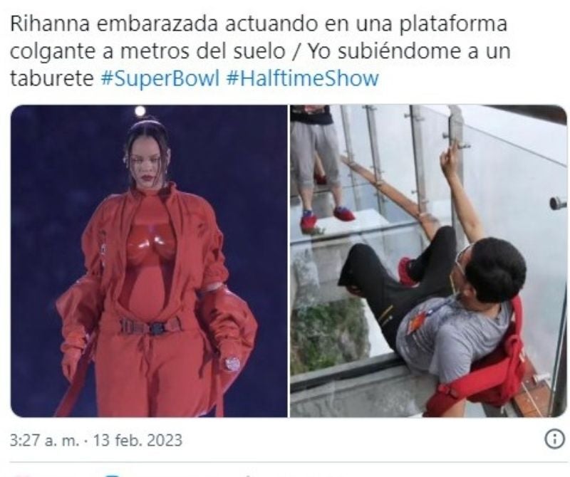 Lo que la gente esperaba que hiciera Rihanna en el #HalftimeShow del #SuperBowl2023 #SuperBowl pic.twitter.com/qZx4qPFNOU