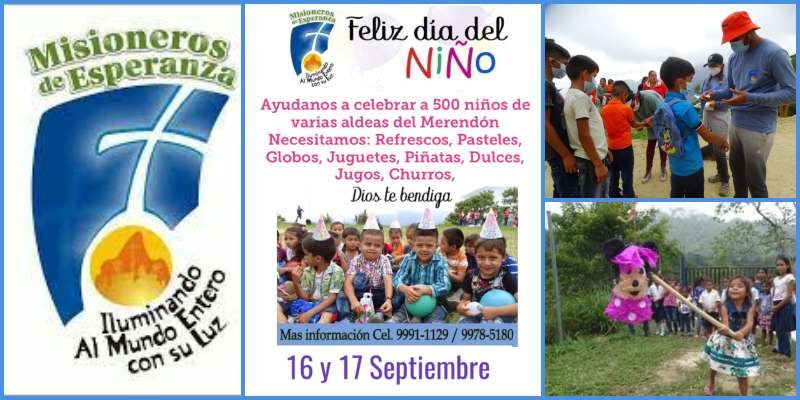 Redacción. La organización Misioneros de Esperanza (MDE) se prepara para llevar alegría a al menos 500 niños de varias aldeas de El Merendón este 16 y 17 de septiembre, cuando celebren el Día del Niño.